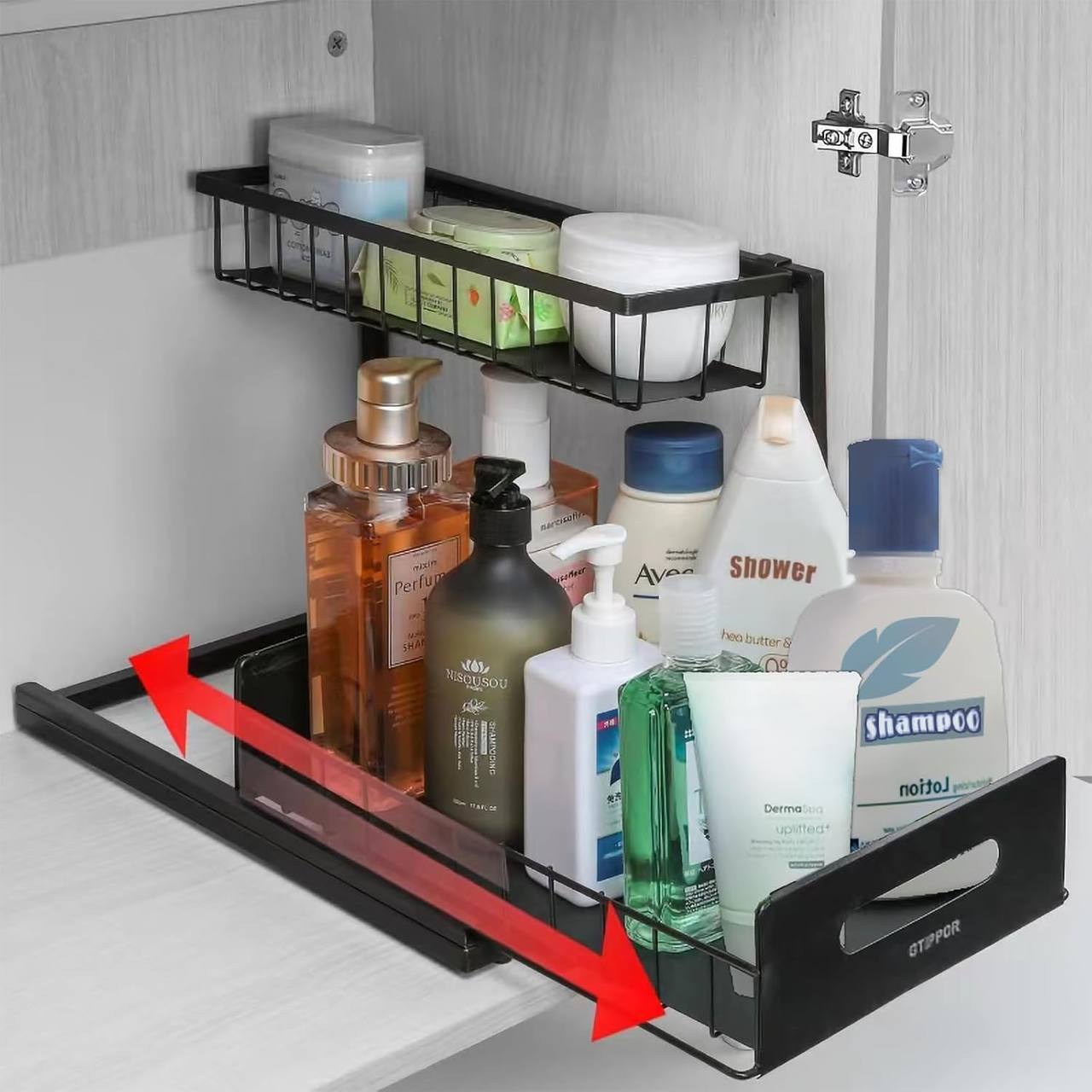 Organisateur Coulissant en Acier Inoxydable à 2 Niveaux Sous l'Évier